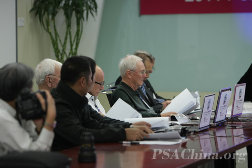 Opening Ceremony of the ExhibitionThe Opening Ceremony of 2011 PSAChina International Exhibition of Photography Date: 14nd, November, 2011 Source: Original The opening ceremony before the judging of the 2011 PSAChina International Exhibition of Photography was open in the meeting room of PSA China at 9:30 am on Nov. 2nd, 2011, which meant the judging of the exhibition would begin. Nine top-class international judges including Mr. John Davis- President of PSA, Mr. Hengry C. NG- Vice President (Service) of PSA, Mr. Thomas Lang- President of Asia Pacific Chapter, International Exhibition Committee of PSA, Mr. Daduan Deng- Lead IR (International Representative) of PSA for the China Region, Mr. John Dean- PSA PTD Immediate Past Chair, Mr. Bill Dart-PSA Print Judging Consultant, Mr. Tom Icklan- PSA Electronic Image Division (EID) 1st Vice Chair, Mr. Zongqi Wu- IR (International Representative) of PSA and Mr. Dexiong Zheng- IR (International Representative) of PSA, as well as the staff of the committee of 2011 PSAChina International Exhibition of Photography participated in the ceremony. Ms. Li Wang, Chairman of the Committee summarized the status of the entries receipt and announced the arrangement of judges and awards in each section. Mr. John Davis, President of PSA, said “The exhibition is a celebration for photography. It’s an education and experience for participants, especially to see, appreciate and learn from the others. It is a chance to compete with the entries, to gain the acceptances or awards, to achieve the distinctions and to be listed on the PSA annual who’s who. It is a team going and friendship building experience for group of the club with the sponsor of the exhibition. In this case the people of PSA China. It is a valuable culture exchange to see the world with the eyes and lenses and other photography around the world. Finally, the most important to me, exhibitions are an activity which PSA believes and I believe, build connections, understanding and friendships between people from different countries, cultures, beliefs, ages, photograph experiences and circumstances. I’ The judging lasted for three days from Nov. 2nd to Nov. 4th, 2011. There were 132 awards from PSA, PSA China, Lens and Full Vision. The judging was formally beginning at 10:30 am. As per PSA international exhibition rules and PSA judging system, PSA China developed a judging system with Chinese and English interface which was praised by the committee and the judges. Ms. Li Wang, Chairman of the Committee Summarizing the Status of the Entries Receipt to the Judges