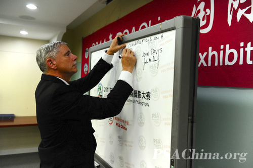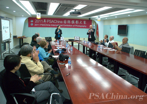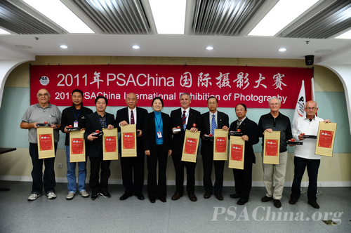 Closing Ceremony of the ExhibitionThe Closing Ceremony of 2011 PSAChina International Exhibition of Photography Date: 14th, November, 2011 Source: Original The closing ceremony of 2011 PSAChina International Exhibition of Photography was hold by Ms. Li Wang, Chairman of the Committee, in the meeting room of PSA China on Nov.4th, 2011. Nine top-class international judges including Mr. John Davis- President of PSA, Mr. Hengry C. NG- Vice President (Service) of PSA, Mr. Thomas Lang- President of Asia Pacific Chapter, International Exhibition Committee of PSA, Mr. Daduan Deng- Lead IR (International Representative) of PSA for the China Region, Mr. John Dean- PSA PTD Immediate Past Chair, Mr. Bill Dart-PSA Print Judging Consultant, Mr. Tom Icklan- PSA Electronic Image Division (EID) 1st Vice Chair, Mr. Zongqi Wu- IR (International Representative) of PSA and Mr. Dexiong Zheng- IR (International Representative) of PSA, as well as the staff of the committee of 2011 PSAChina International Exhibition of Photography participated in the ceremony. Ms. Li Wang, Chairman of the Committee, presented the elegant Chinese style certificates and sent the Exhibition plaques to the judges. . Then on behalf of the judge panel, Mr. Daduan Deng-Lead IR (International Representative) of PSA for the China Region, made a speech. Firstly he expressed his gratitude for the hard work of the judges, and said “The entries of 2011 PSAChina International Exhibition of Photography are mostly good images with diversified themes. All the judges strictly conformed to PSA judging rules, followed the principles of fairness, impartialness and openness, and carefully made the judging for each image of each entrant, which ensured the authority of the exhibition. Beside, the committee made a good organization and preparation. As the first exhibition that PSA China has had, 2011 PSAChina International Exhibition of Photography was very successful.” In the ceremony, Mr. John Davis spoke highly of the exhibition organizer-PSA China and said “During the past few days, I had an opportunity to know more about the excellence of the team. Everybody was open with each other and made their efforts to do a good job. The whole team showed a spirit with high profession and devotion. And we learnt a lot from all of you. The exhibition was very well organized. The expected goal has been achieved. Congratulations on the success of the exhibition!” After the speech, Mr. John Davis presented the blue IR medal for Mr. Thomas Lang, Mr. Zongqi Wu and Mr. Dexiong Zheng for their outstanding contributions on the development of PSA. Finally, all the judges left their best wishes and signature on the flag of the exhibition, which meant the closing of the judging. In the following days, the committee was busy with the arrangement of the judging results.
