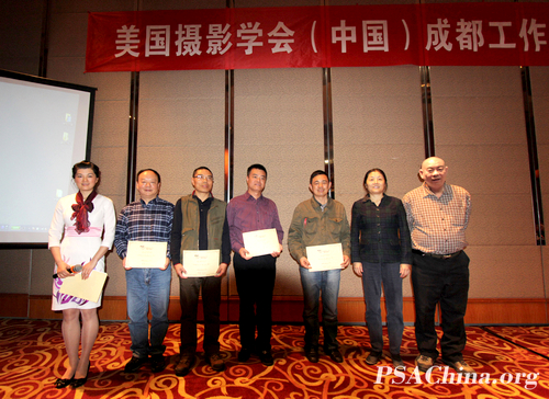美国摄影学会(中国)成都摄影工作站成立大会隆重举行时间:2012年11月7日 来源:成都工作站供稿 2012年10月26日晚7点,美国摄影学会(中国)(PSA China)成都摄影工作站成立大会在成都锦江宾馆礼堂隆重召开,此举标志着成都乃至西南地区艺术摄影的国际化趋势将进入一个视觉更广阔、创作更活跃、思想更开放、成绩上台阶的崭新发展阶段。 美国摄影学会(中国)主席邓大端先生和副主席王莉女士出席大会;四川著名军旅摄影家赵忠路将军、四川摄影家协会副主席陈锦先生、四川青年摄影家协会副主席李勇先生、金牛摄影协会主席候宗才先生、摄影之都网站长田蓉先生等嘉宾应邀参加了大会。 参加大会的130多名PSA China会员和摄影爱好者,听取了成都工作站站长廖小西先生的筹备工作报告,见证了美国摄影学会(中国)成都工作站站长、副站长成员的任命仪式,由邓大端主席向站长廖小西先生;副站长李平先生、谢红玫女士、姜继涛先生、邓小波先生颁发了证书。 王莉副主席发表了热情洋溢的贺辞;邓大端主席的专题讲座 “PSA理念和如何参加国际摄影展览”把大会气氛推向高潮,会场不断响起的热烈的掌声!廖小西先生随后展示了近年在国际摄影展览、沙龙中获得28枚金牌的作品和成都工作“2012肯尼亚创作团会员作品选”点评,简析创作及参赛心得,与会者由此得到很大的启发。 晚10点,大会在热烈的掌声中圆满闭幕。 邓主席、王主席会前参观成都站会员作品展 成都站副站长谢红玫女士主持大会 美国摄影学会(中国)主席邓大端先生讲话 成都站副站长李平先生致欢迎辞 成都站站长廖小西先生作筹备工作报告 王莉主席发表热情洋溢的贺辞 邓大端主席、王莉副主席与成都站工作班子 邓主席的专题讲演使大会气氛进入高潮 欢迎转载,请注明出处! |