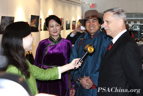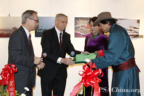 在开幕式上,美国摄影学会(PSA)会长约翰‧戴维斯和副会长吴振亨分别致词,内蒙古摄影家协会副主席哈斯巴根发言,纽约州政府派代表向哈斯巴根颁发了“友好文化使者”荣誉证书。