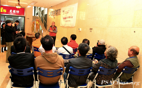 首届PSA China环球摄影俱乐部“心语”摄影展海印展区完满开幕时间:2013年04月8日 作者:美国摄影学会(中国)广州站副站长 陈列 由美国摄影学会(PSA)机构会员环球摄影俱乐部举办的“心语”摄影展于4月8日上午10:00在海卬摄影城三楼盛大开幕。这是“心语”摄影展第二次向公众开放。展出时间为2013年4月8日至26日,为期18天。 本次影展汇集了以美国摄影学会(PSA)中国会员为主的30多位摄影爱好者的90幅优秀摄影作品,其中不乏在国内外摄影大赛中屡获殊荣的佳作。大家怀着共同的兴趣爱好走到一起,热情参与自发举办影展,携手追求摄影艺术的至真、至善、至美,用光影的语言展现目光所及、足迹所至之风土人情、寰宇风光! 广州十几家摄影协会领导,摄影界同行以及媒体代表等共数十余人出席了开幕式。出席嘉宾包括:广东省摄影家协会副主席陈俊生先生、《广州日报》摄影部主任张伟清先生、珠江摄影协会会长梁玉潘、广州青年摄影家协会主席刘炽棠、副主席曾志光、荔湾摄影协会主席黄囯祥、山卡拉摄影俱乐部会长徐伯宏,poco总版主朱凯、poco总版主张国强、美国摄影学会(中国)广州站站长黄宣钦、副站长陈金成、陈列等。现场气氛热烈而又隆重。 开幕式由陈列主持,广东省摄影家协会副主席陈俊生致辞,预祝影展圆满成功。随后,美国摄影学会(PSA)环球摄影俱乐部祝纯英代表俱乐部讲话,介绍本届影展情况。开幕式结束后,嘉宾们兴致勃勃地参观了影展作品,与作者现场交流创作经历和感受,整个展馆洋溢着温馨愉悦的氛围,精彩的作品得到了大家一致赞赏! 本届影展的成功特别鸣谢海卬摄影城的大力支持! 全体大合影 现场气氛热烈而又隆重 整个展馆洋溢着温馨愉悦的氛围