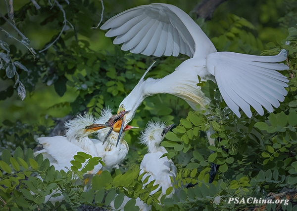 童江川自然组不限主题作品:《白鹭喂食》Egret feeding 在此,PSA China向所有在本届影展中获得优异成绩的中国参展者表示衷心的祝贺!