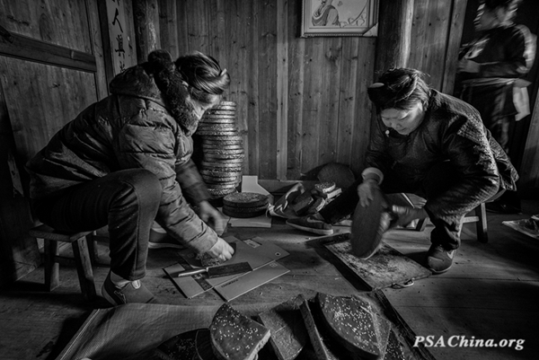 罗文杰画意单色组不限主题作品:《切年糕》cut rice cakes