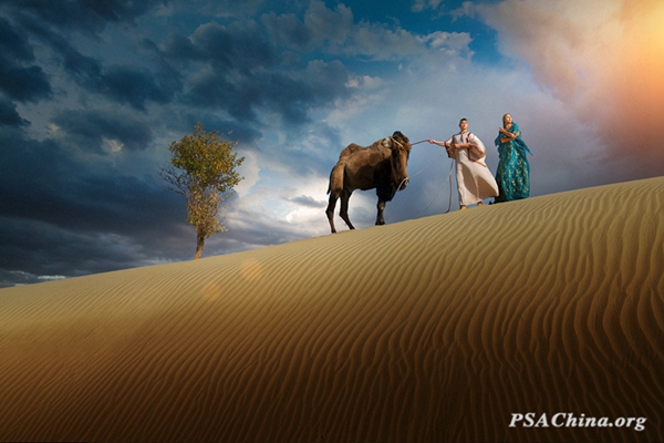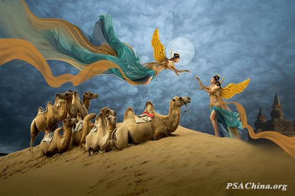 李汉新画意彩色组不限主题作品:《丝路驼铃》Silk Road camel bells