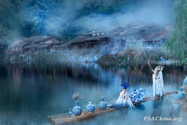 杨秋平画意彩色组不限主题作品:《烟雨青花》Misty Rain Blue And White