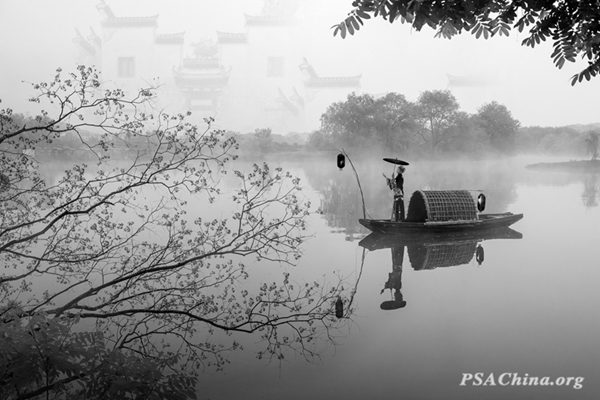 郭书玉画意彩色组不限主题作品:《一叶扁舟》A tiny boat
