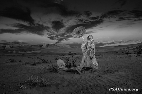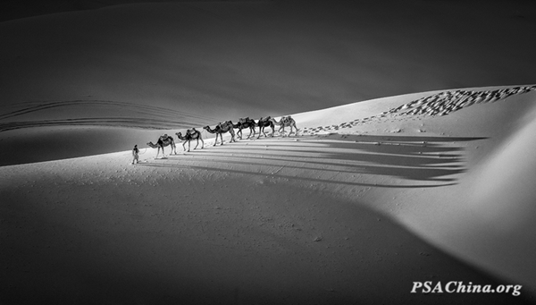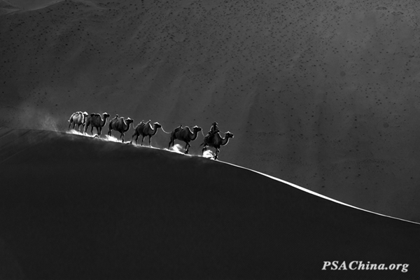 安喜平画意单色组不限主题GIP 奖牌作品:《大漠驼影》Camels in teh desert