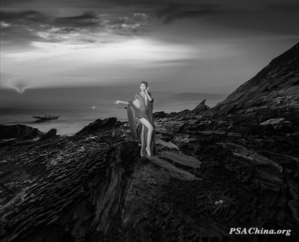 钟海明画意单色组不限主题作品:《海的女儿》The Daughter of the Sea