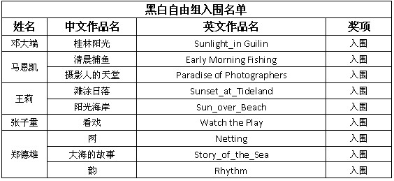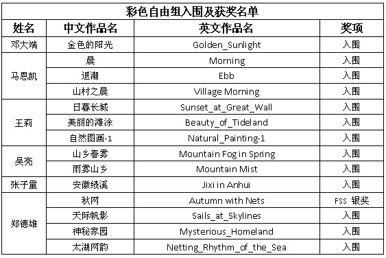 LESKOVAC 2011塞尔维亚第一届国际摄影展由美国摄影学会(PSA)认证,设立人、森林、树木(彩色/黑白),彩色自由,黑白自由,旅游照片(彩色/黑白)四个组别。所有入选作品将列入美国摄影学会(PSA)星标系统。 以下为入围获奖名单: 除了上述会员通过PSA China送展的作品入围获奖外,还有其他一些PSA中国会员的作品入围,会员高艳东先生的《树林》(The Woods)和《晨钓》(The morning fishing)分别获得人、森林、树木组和彩色自由组入围,会员董宏宇先生的《海上渔村之一》(Village on the Sea 1)获得彩色自由组入围,会员吴泽龄先生的《清晨》(Early morning)和《锦绣田园》(Beautiful countryside)获得彩色自由组入围,《翠林楼》(Tsui Lam House)获得人、森林、树木组入围。 在此,美国摄影学会(中国)(PSAChina)向所有在本届影展中获得优异成绩的中国参展者表示衷心的祝贺! |