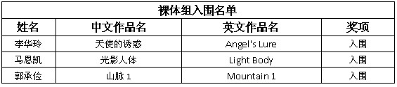 塞尔维亚“Cacak 2011”第一届国际摄影沙龙由美国摄影学会(PSA)认证,设立裸体组,黑白自由,彩色自由三个组别。所有入选作品将列入美国摄影学会(PSA)星标系统。 以下为入围获奖名单: 在此,美国摄影学会(中国)(PSAChina)向所有在本届影展中获得优异成绩的中国参展者表示衷心的祝贺! |