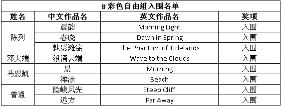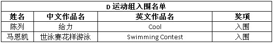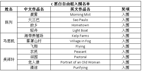 以下为入围获奖名单: