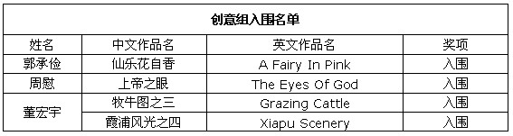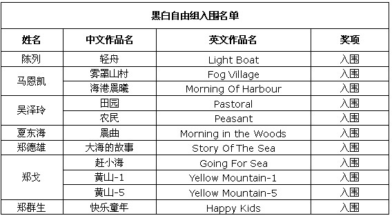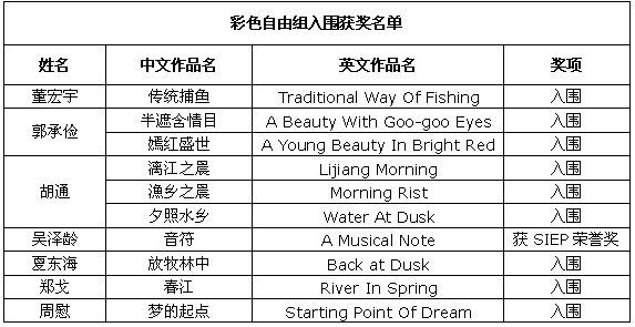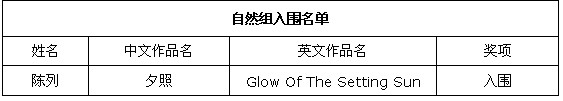 快讯—第46届悉尼国际摄影展获奖成绩公布时间:2011年09月27日 来源:本站原创 第46届悉尼国际摄影展获奖成绩(46th SYDNEY INTERNATIONAL EXHIBITION of PHOTOGRAPHY)获奖成绩尽管在其官方网站上还未公布,我们根据影展组委会发出的成绩邮件,整理汇总出通过美国摄影学会(中国)送展获得入围以上成绩册,本次获奖的有15位中国会员的26幅作品。美国摄影学会会员吴泽龄先生的作品《音符》(A Musical Note)荣获彩色自由组SIEP荣誉奖。 第46届悉尼国际摄影展由美国摄影学会(PSA)认证,设立彩色自由组、黑白自由组、创意组和自然组,共四个组别。所有入选作品将列入美国摄影学会(PSA)星标系统。 吴泽龄先生第46届悉尼国际摄影展SIEP荣誉奖作品《音符》 以下为入围获奖名单: 在此,美国摄影学会(中国)(PSA China)向所有在本届影展中获得优异成绩的中国参展者表示衷心的祝贺! |