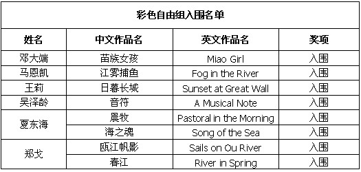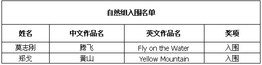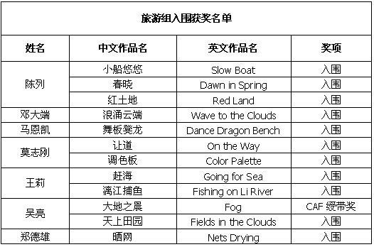 第8届阿根廷BIENAL SICAFI 2011国际摄影展由美国摄影学会(PSA)认证,设立彩色自由组、黑白自由组、自然组和旅游组,共四个组别。所有入选作品将列入美国摄影学会(PSA)星标系统。 以下为入围获奖名单: 在此,美国摄影学会(中国)(PSA China)向所有在本届影展中获得优异成绩的中国参展者表示衷心的祝贺!