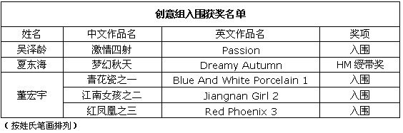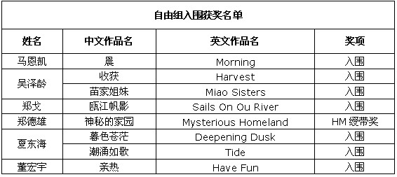 以下为入围获奖名单: 在此,美国摄影学会(中国)(PSA China)向所有在本届影展中获得优异成绩的中国参展者表示衷心的祝贺! |