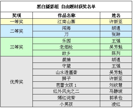 2011PSA China沙龙摄影网络大赛第三季赛获奖成绩公布时间:2011年11月18日 来源:本站原创 2011年美国摄影学会(中国)(PSA China)沙龙摄影网络大赛第三季赛获奖名单正式揭晓。评审委员对本赛季五大组别6个小组(彩色画意组-创意题材、彩色画意组-自由题材、黑白摄影组、旅游摄影组、新闻纪实摄影组和自然摄影组)的全部参赛作品分别进行了评审。评委们一丝不苟,辛勤工作,为每幅作品认真打分。最终评选出5个一等奖、11个二等奖、16个三等奖和46个优秀奖。 PSA China沙龙摄影网络大赛本着公平、公正、公开的精神,参照PSA评审规则进行评审。根据PSA评审规则要求,本次大赛自然组的投稿作品,均不满足自然组一等奖的获奖要求,因此自然摄影组一等奖空置。 PSA China沙龙摄影网络大赛组别设计以及投稿要求完全按照美国摄影学会(PSA)制订的的国际摄影大赛的规则办理,目的在于规范我们的比赛的同时让广大摄影爱好者了解熟悉国际比赛习惯,为将来走出国门参加世界级的比赛做好准备。 在此,美国摄影学会(中国)对所有获得奖项的参赛者表示衷心的祝贺! 以下为获奖名单: |