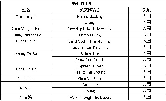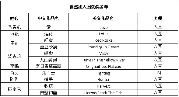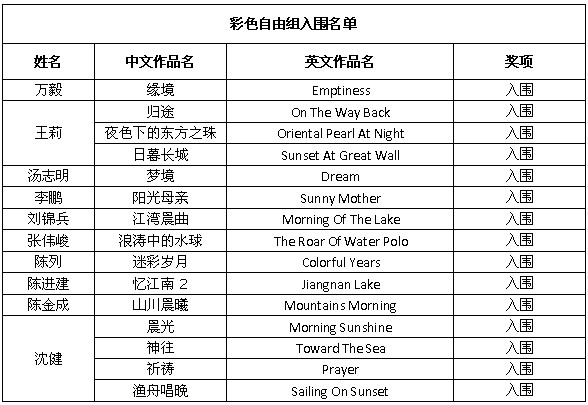 美国第29届Ridgewood国际摄影展由美国摄影学会(PSA)认证,设立彩色自由组、自然组和野生生物组,共三个组别。所有入选作品将列入美国摄影学会(PSA)星标系统。 以下为入围获奖名单: 除了上述会员通过PSA China送展的作品入围获奖外,还有其他一些PSA中国会员和摄影朋友取得了不错的成绩,他们的获奖和入围作品如下: 在此,美国摄影学会(中国)(PSA China)向所有在本届影展中获得优异成绩的中国参展者表示衷心的祝贺!