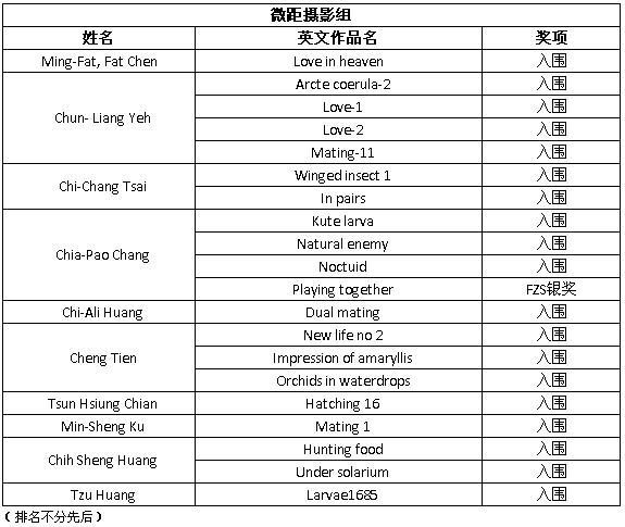 斯洛文尼亚“天地之间”第三届国际摄影沙龙由美国摄影学会(PSA)认证,设立飞翔组、自由组、自然组和微距摄影组,共四个组别。所有入选作品将列入美国摄影学会(PSA)星标系统。 以下为入围获奖名单: