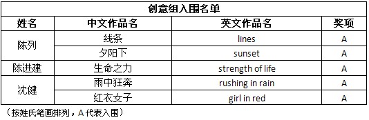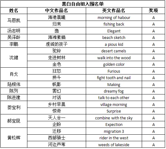 除了上述会员通过PSA China送展的作品入围获奖外,还有其他一些PSA中国会员和摄影朋友取得了不错的成绩,他们的获奖和入围作品名单如下: 在此,美国摄影学会(中国)(PSA China)向所有在本届影展中获得优异成绩的中国参展者表示衷心的祝贺! |