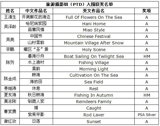 在此,美国摄影学会(中国)(PSA China)向所有在本届影展中获得优异成绩的中国参展者表示衷心的祝贺! |
