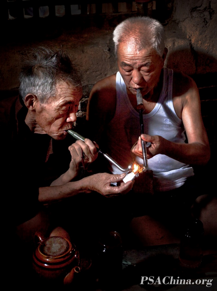 潘金明作品:《抽水烟的老人》The old man pumped smoke