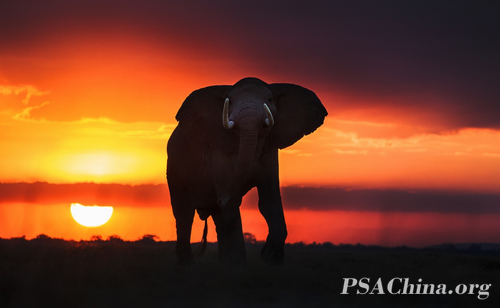 肖戈 , 沙龙绶带奖 , 夕阳中的非洲象 , Sunset in the African elephant