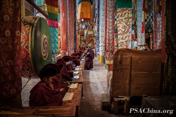 李鹏作品:《寺庙中诵经的喇嘛》lama chanting