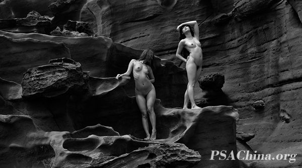 刘树田 画意组自由主题黑白 PSA金奖作品: 《 山涧的裸女 》