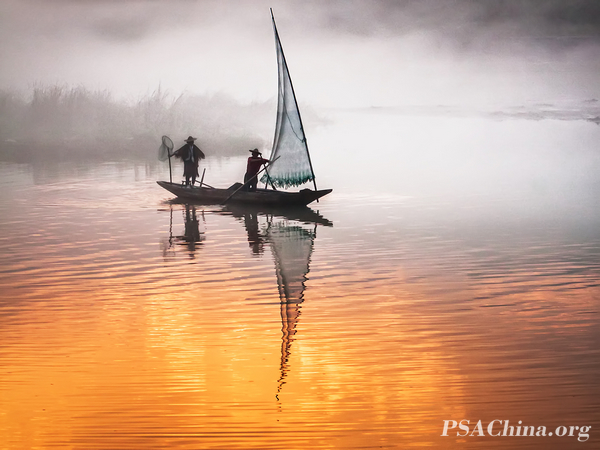会员陈列画意组自由主题彩色作品《渔人网影》摘得一枚FIAP金奖!