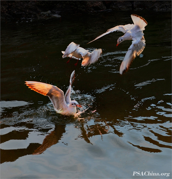 万毅作品:《红嘴鸥争食之一》Gull clashing 1