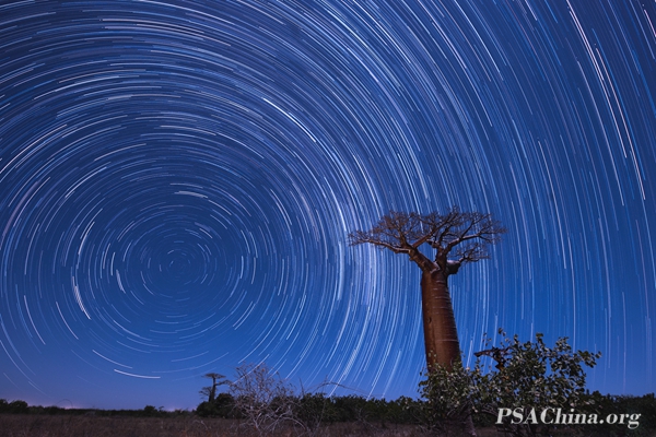 陈欣欣作品:《猴面包树星轨》Star track over Monkey bread tree 获得画意组风光主题SALON 绶带奖!