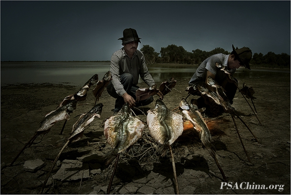 万毅画意组自由主题(彩色)作品:《烤鱼》Roast fish