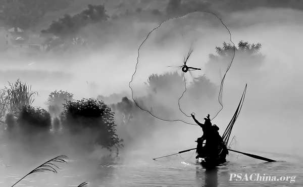 郑锦伟画意组自由主题(黑白)作品:《涯雾晚唱》Sing the night fog