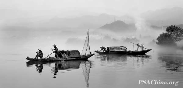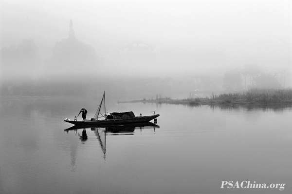 郑锦伟画意组自由主题(黑白)作品:《扬子江畔》The banks of the Yangtze river