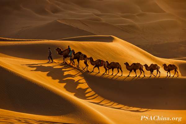陈欣欣作品:《驼影》camels in the desert获得旅游组自由主题SALON 银牌!