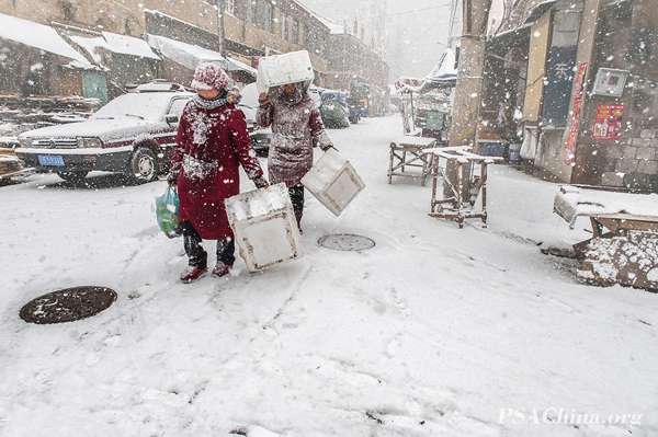 李鹏画意组人与街道主题作品:《大雪无阻》Not afraid of the snow
