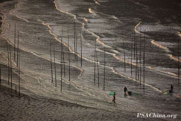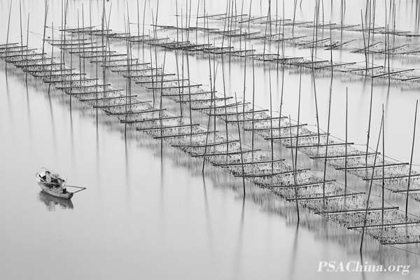 廖海鹏画意组自由主题(黑白)作品:《紫菜养殖》Seaweed farming