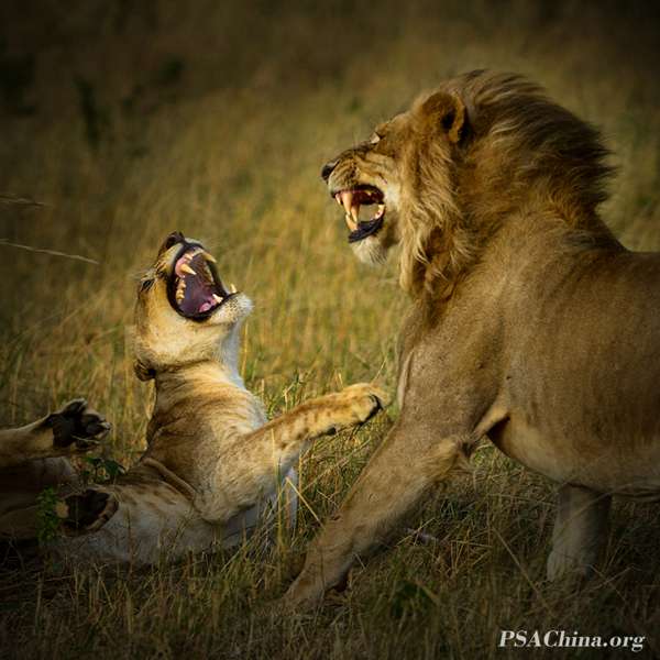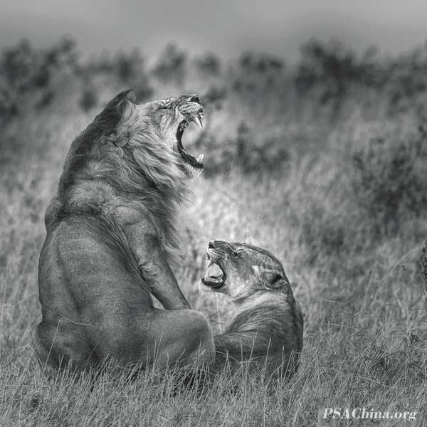 陈夏梅画意组自由主题(黑白)作品:《狮王争霸》Lion King