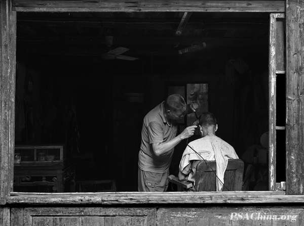 白植槟画意组自由主题(黑白)作品:《理发室》Barber Shop