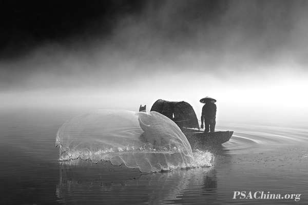 张传明画意组自由主题(黑白)作品:《雾中撒网》Mist nets