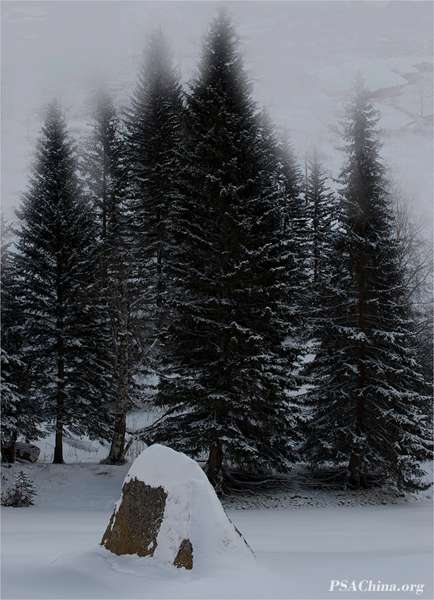 万毅自然组自由主题作品:《雾松之一》Fog pine 1