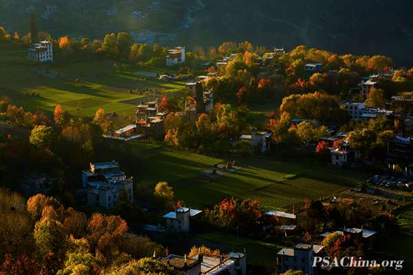 邓涛画意组自由主题(彩色)作品:《藏寨秋色》Tibetan village autumn
