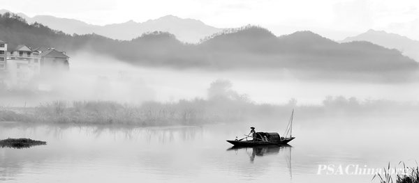 郑锦伟画意组自由主题(黑白)作品:《晓雾疏影》Das fischermadchen and dawn fog