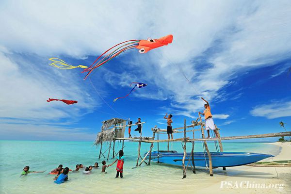 韩克画意组水主题(彩色)作品:《放风筝》Fly a kite