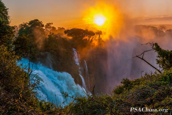 陈欣欣画意组日出与日落主题(彩色)作品:《日出维多利亚瀑布》Victoria falls sunrise