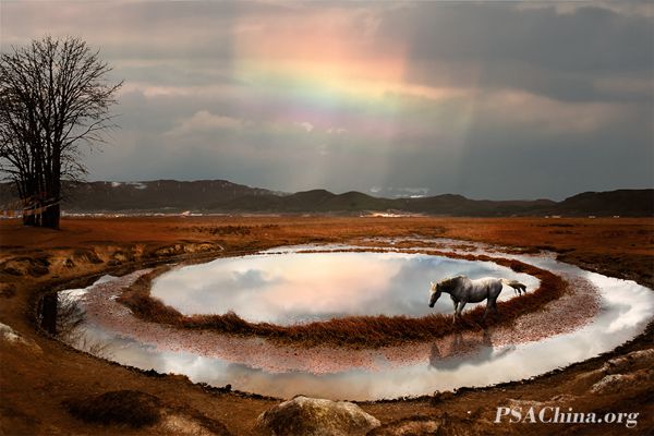 池晓虹作品:《龙脊过客》Dragon ridge traveler荣获画意组自由主题(彩色)BHOPAL赛区PSA绶带!