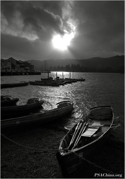 万毅画意组自由主题(黑白)作品:《湖边的舟》Lake boat