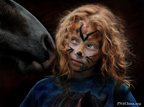 李鹏画意组自由主题(彩色)UPI银牌作品:《高原母子和马》Mother and Kid