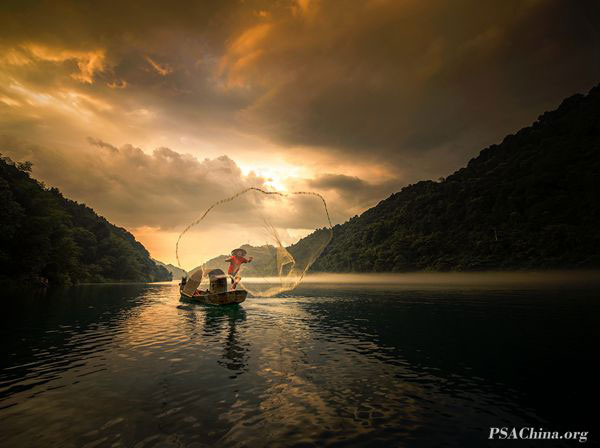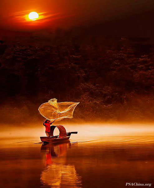 池晓虹画意组自由主题(彩色)作品:《晨捕》morning fishing