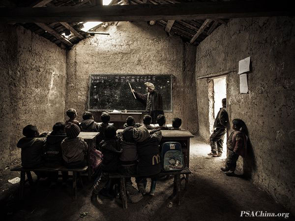 李宏画意组自由主题(彩色)作品:《山村学堂》Village Class