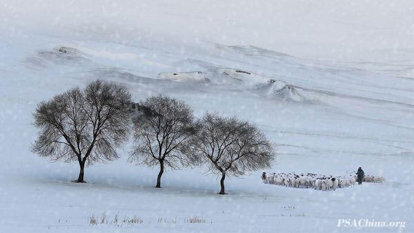 张晓琪画意组自由主题(黑白)作品:《风雪归途》Snow way back